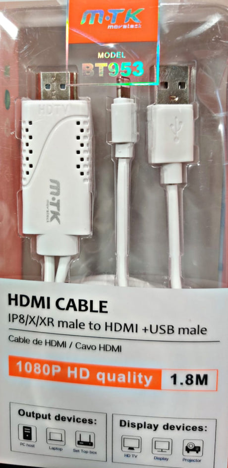 BT953 iPhone Lightening to HDMI Cable, for iPhone & iPad to TV, 1080P, White
